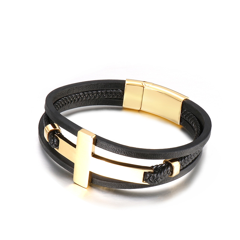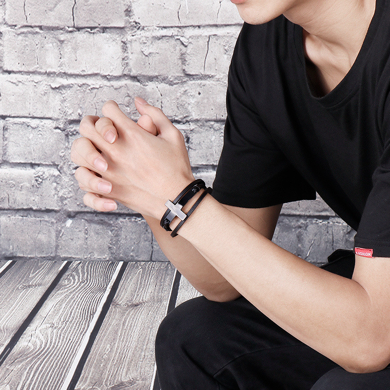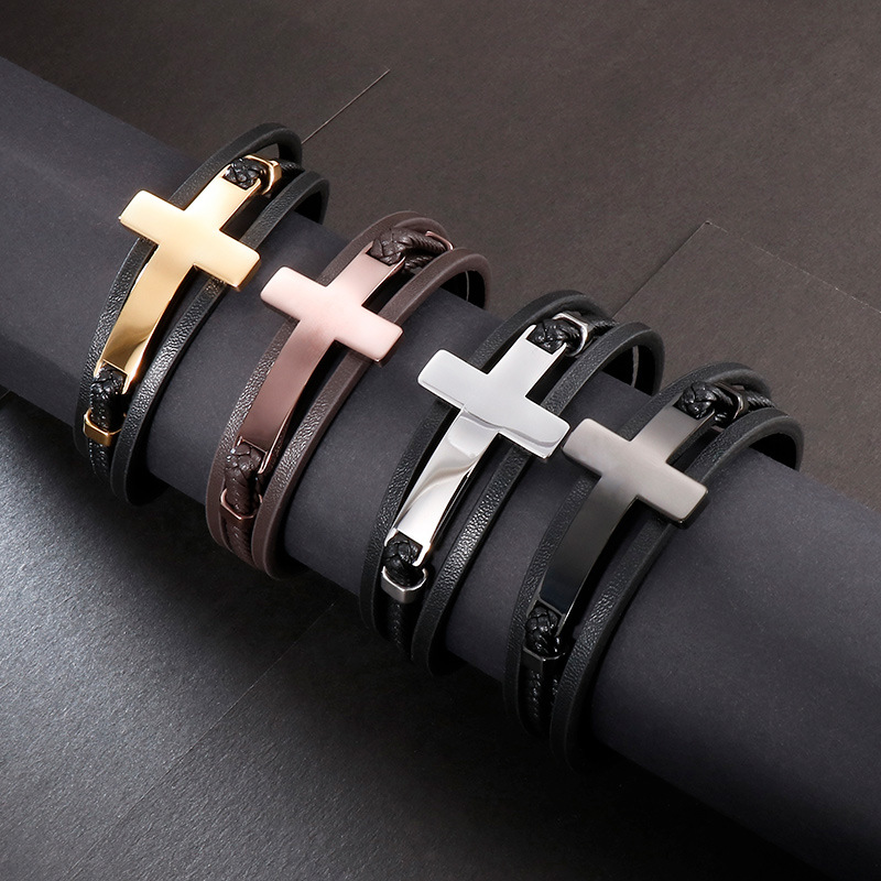 Style: Europe and AmericaMaterial: titanium steelTreatment process: electroplatingType: BraceletStyle: Men'sModeling: Cross