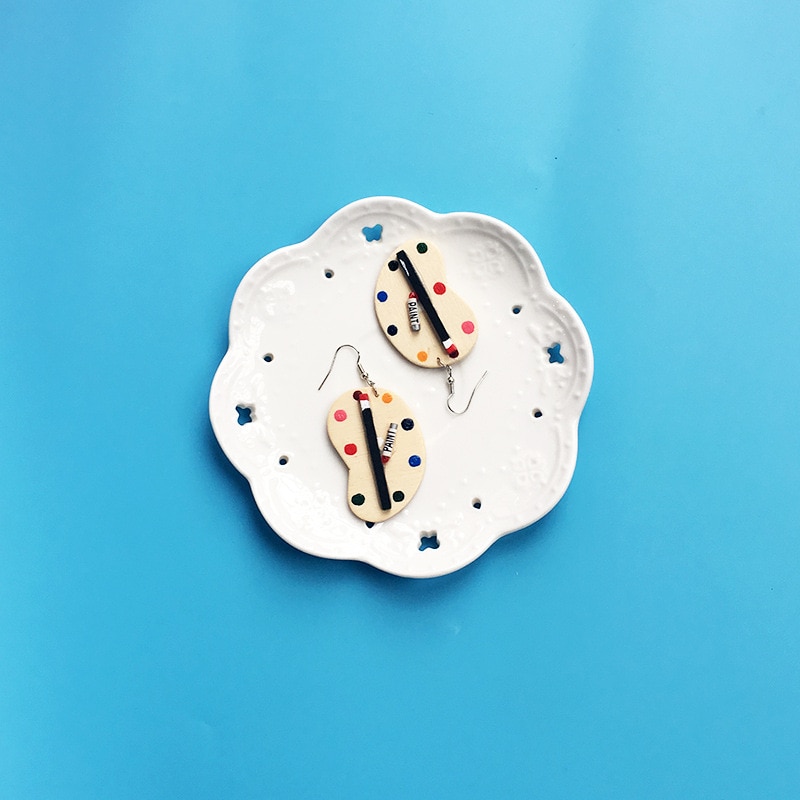 Fun Handmade Creative Palette Asymmetric Earrings Summer Lovely Drawing Board Personalized Drop Earrings Fashion Brincos