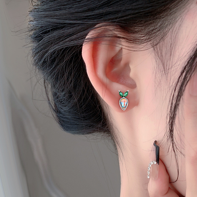 Product information:Treatment Process: Electroplating Color: carrot ear studs (copper white gold plated) Applicable population: Female Material: Alloy/silver plating/gold plating Shape: fruit Popular element: Carrot Style: Simple