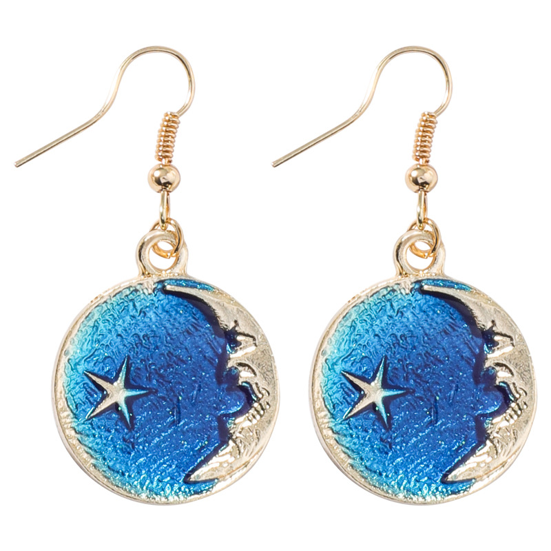 Blue stars moon earrings asymmetric planet geometry round long earrings ear clip women gift jewelry