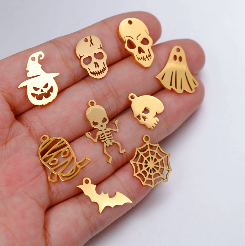 Product information:Pattern: GhostType: diy ornament accessoriesTreatment Process: ElectroplatingColor: steel, goldMaterial: Stainless steelSize: 10mmPopular elements: pumpkin skullStyle: Punk
