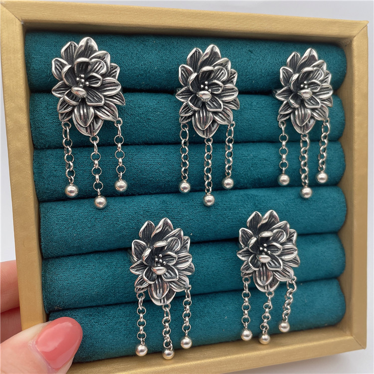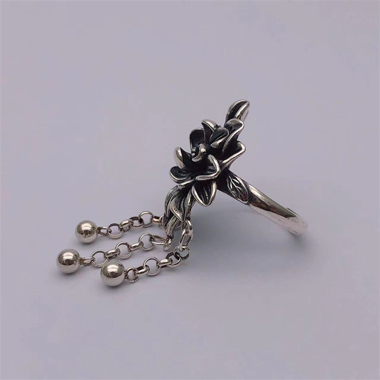 Retro Three-dimensional Flower Ring With Tassel