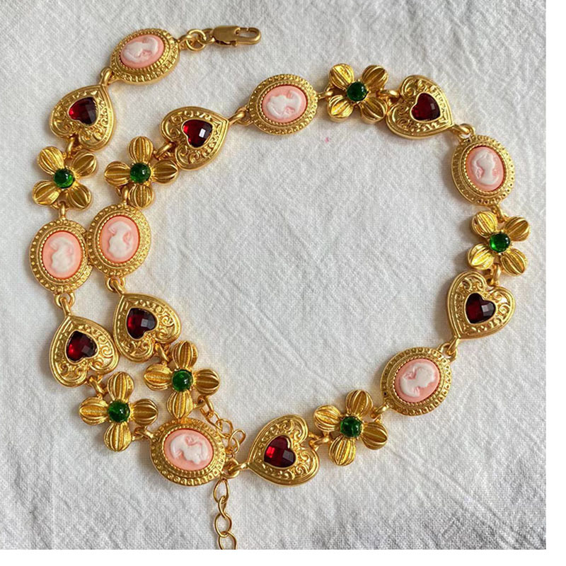 Product information:Pattern: Love Heart/water drop/Bell Color: B275 necklace, B275 bracelet, B910 ear hook Applicable population: Female Pendant material: mixed gem inlaid Chain style: Regular chain Material: Alloy Style: court style