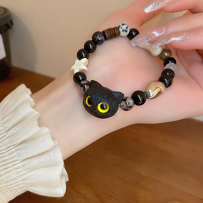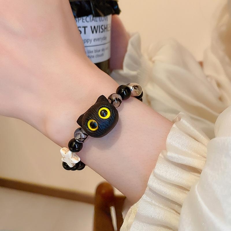 Product information:Processing Technology: manual Color: Bracelet-Black Applicable population: FemaleStyle: Women'sMaterial: acrylic, alloy, resin, ceramic, cat's eye stone