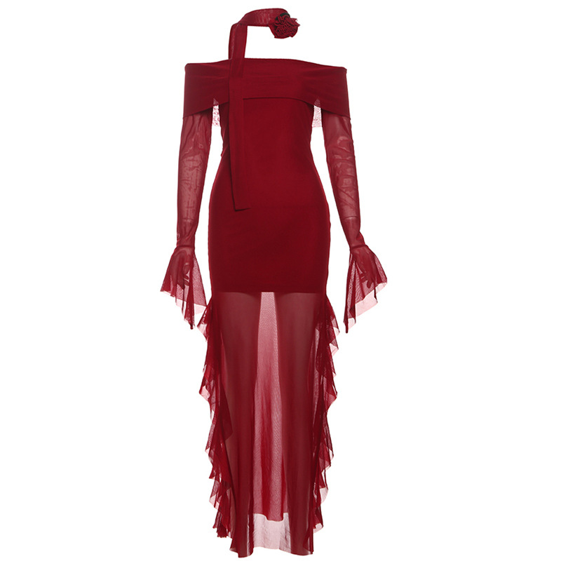 Product information: Pattern: solid color Skirt type: A- line skirt Color: red, purple Waist type: high waist Size: S,M,L Main fabric composition: Polyester (polyester fiber) Sleeve length: long sleeve Skirt Category: Dress