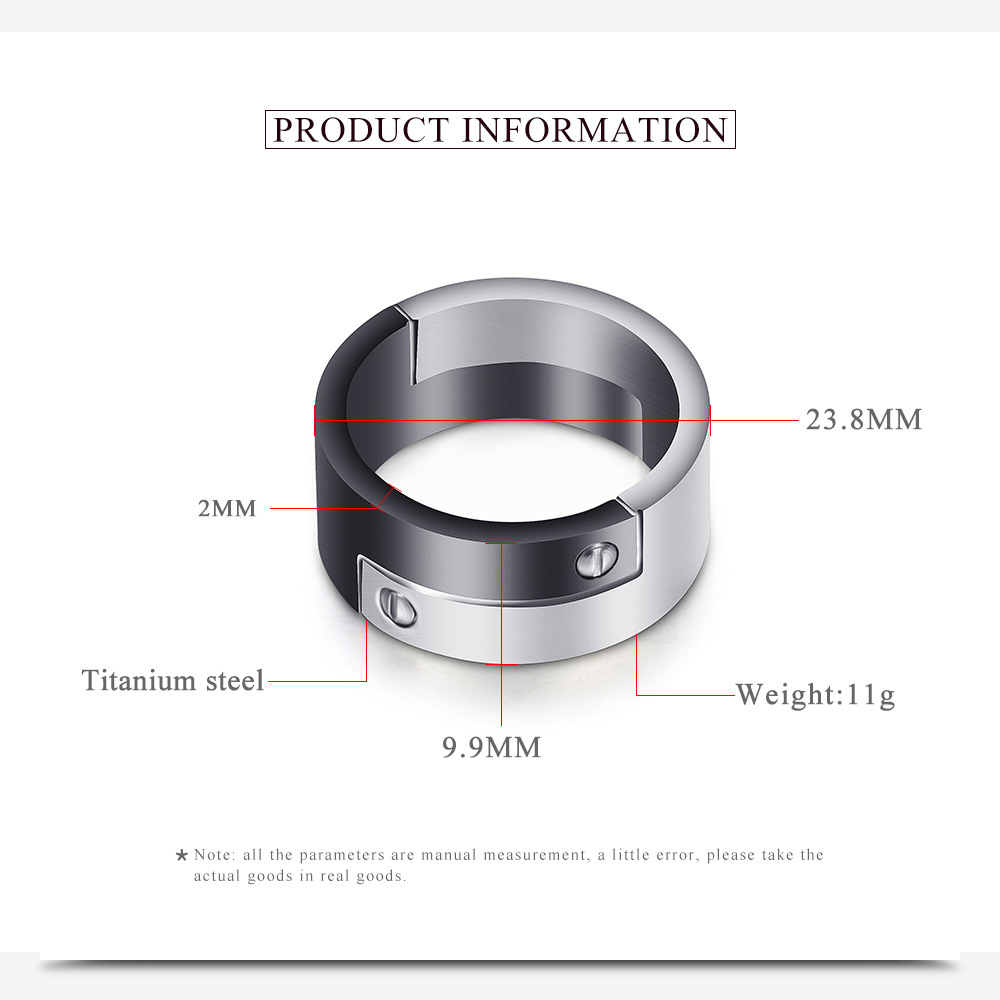 Product information:Color: SteelApplicable people: men'sSize: no.8, no.9, no.10, no.11Style: Men'sMaterial: titanium steelShape: GeometricPopular elements: roundStyle: Simple