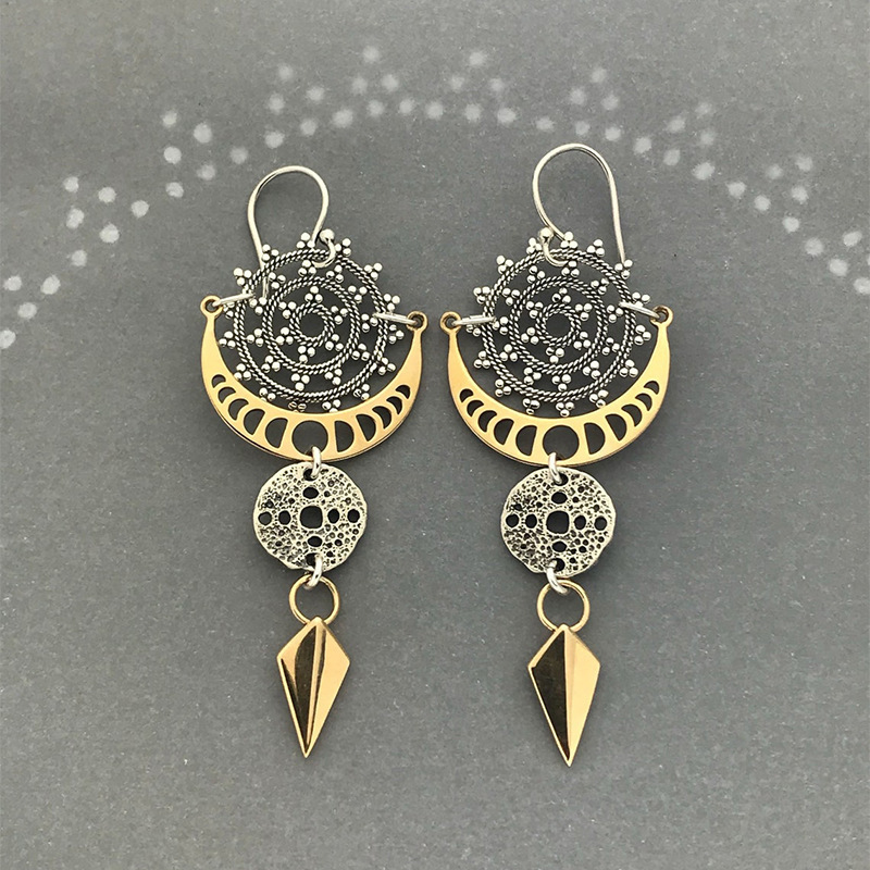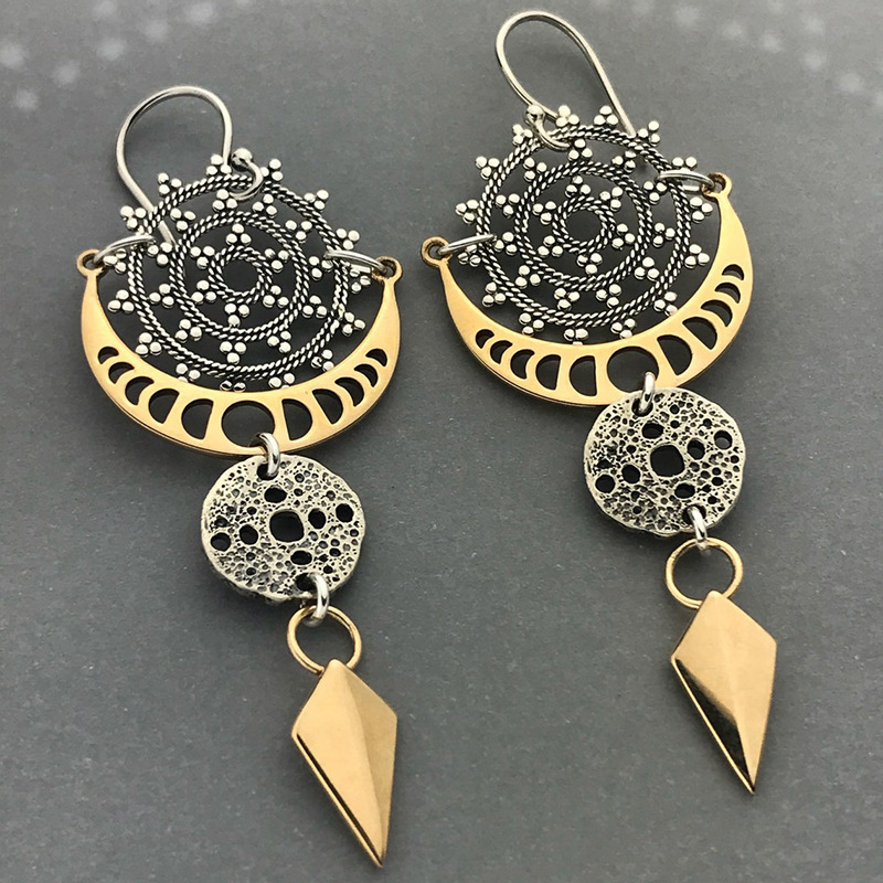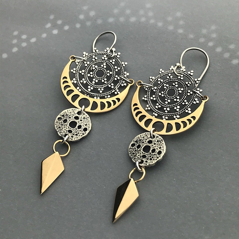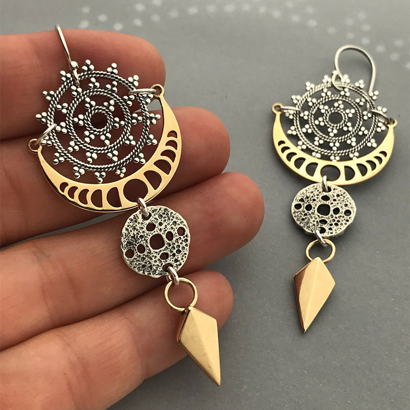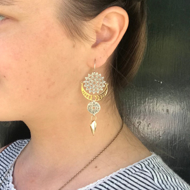 Bohemian Style Circle Pattern Earrings Exaggerated Trend Moon Phase Texture Arrow