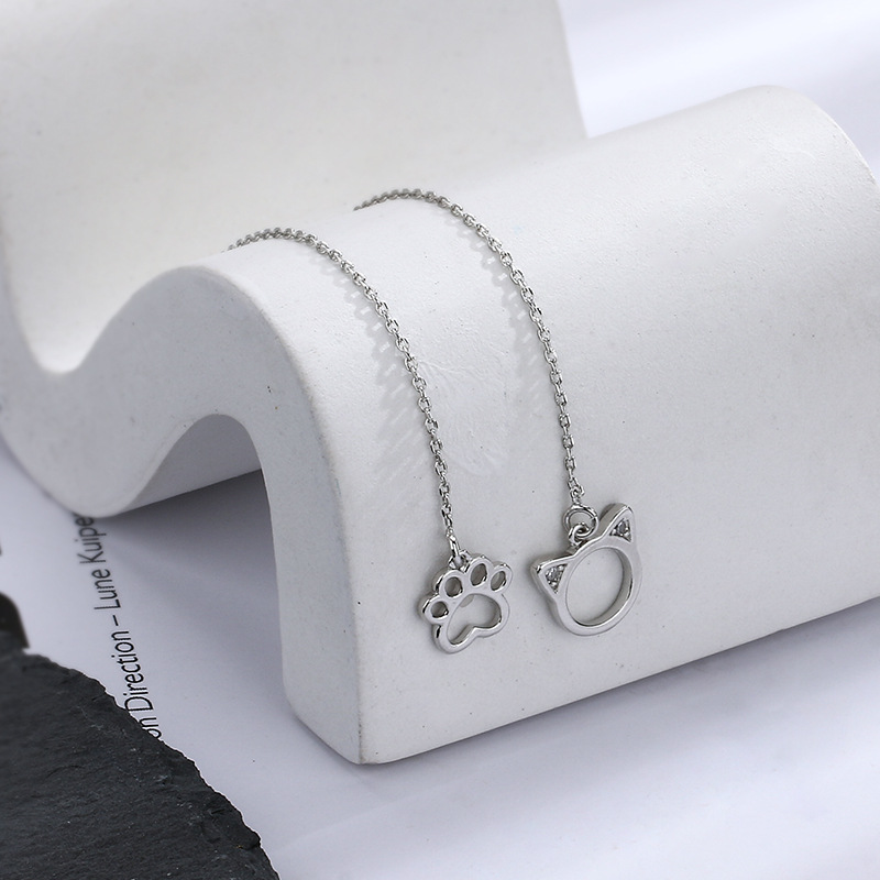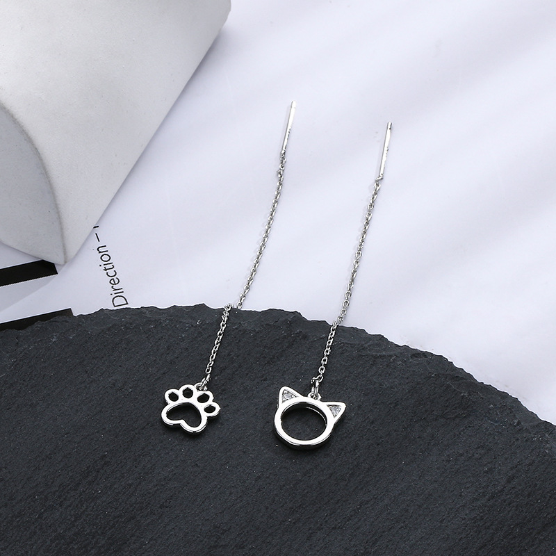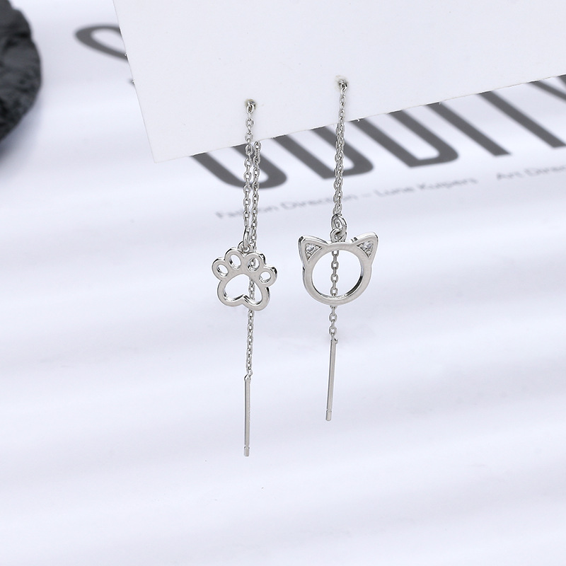 Specification:Name: Cat claw ear wireStyle: Korean style, fashion, simpleMaterial: Copper + 3a zirconColor: White goldSize: Foot 8mm, cat 10mm, total length 80mmPacking list: