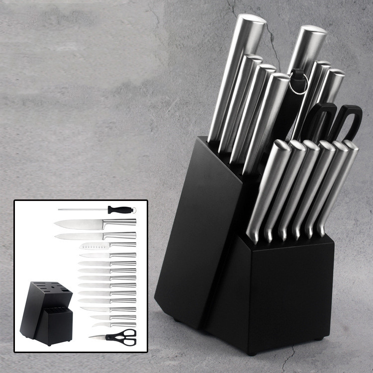 Chef knife * 1, slicer * 1, 6x steak knife, rounded steak knife * 1, versatile knife * 1, Sande knife fruit leather knife * 1, curved fruit leather knife * 1, scissors * 1, sharpening stick * 1, knife holder * 1