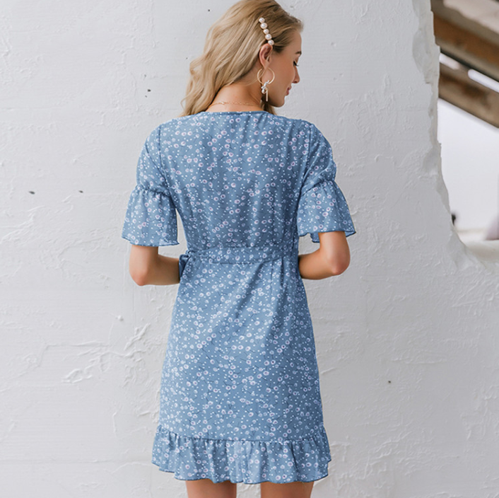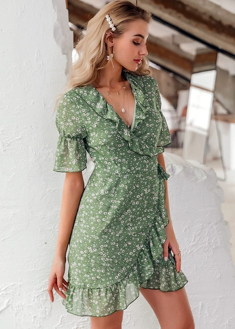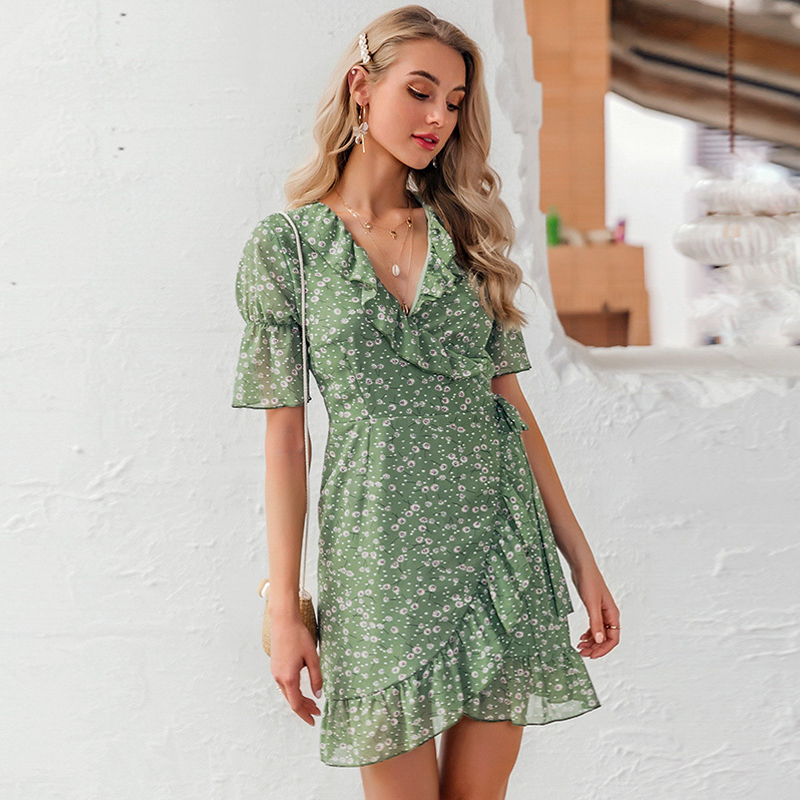 Bohemian Chiffon Ruffle Print Short Dress