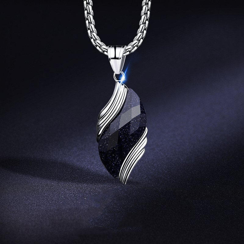 Color: black spar (without chain), blue sandstone (without chain), black spar (with pearl chain 3mm*60cm), blue sandstone (with pearl chain 3mm*60cm)