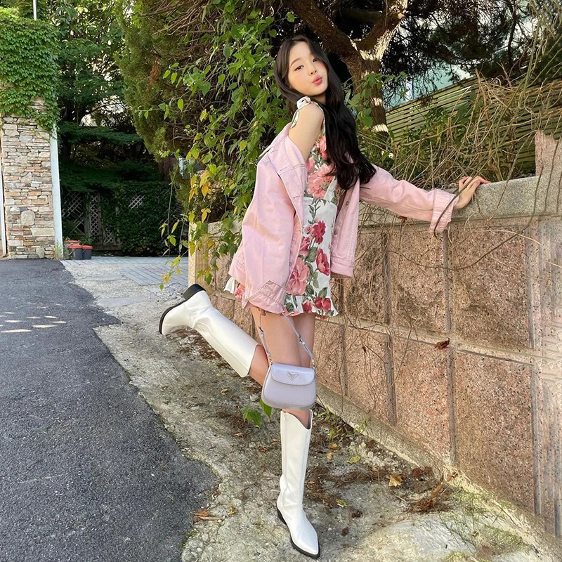 Color classification: Lace-up skirt, denim jacket