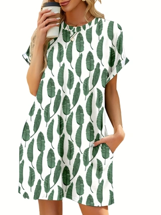 Short Sleeve Printed Pocket Dress