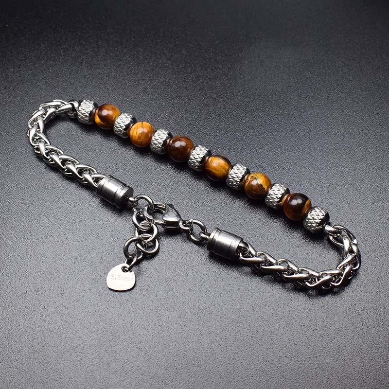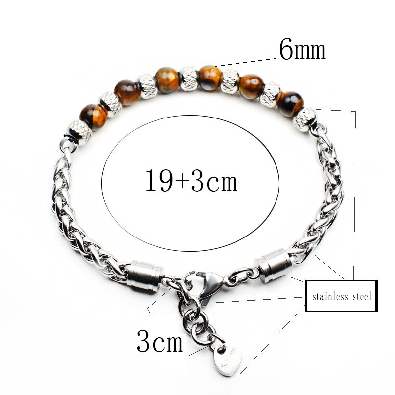 Stainless steel adjustable 6mm tiger's eye bracelet