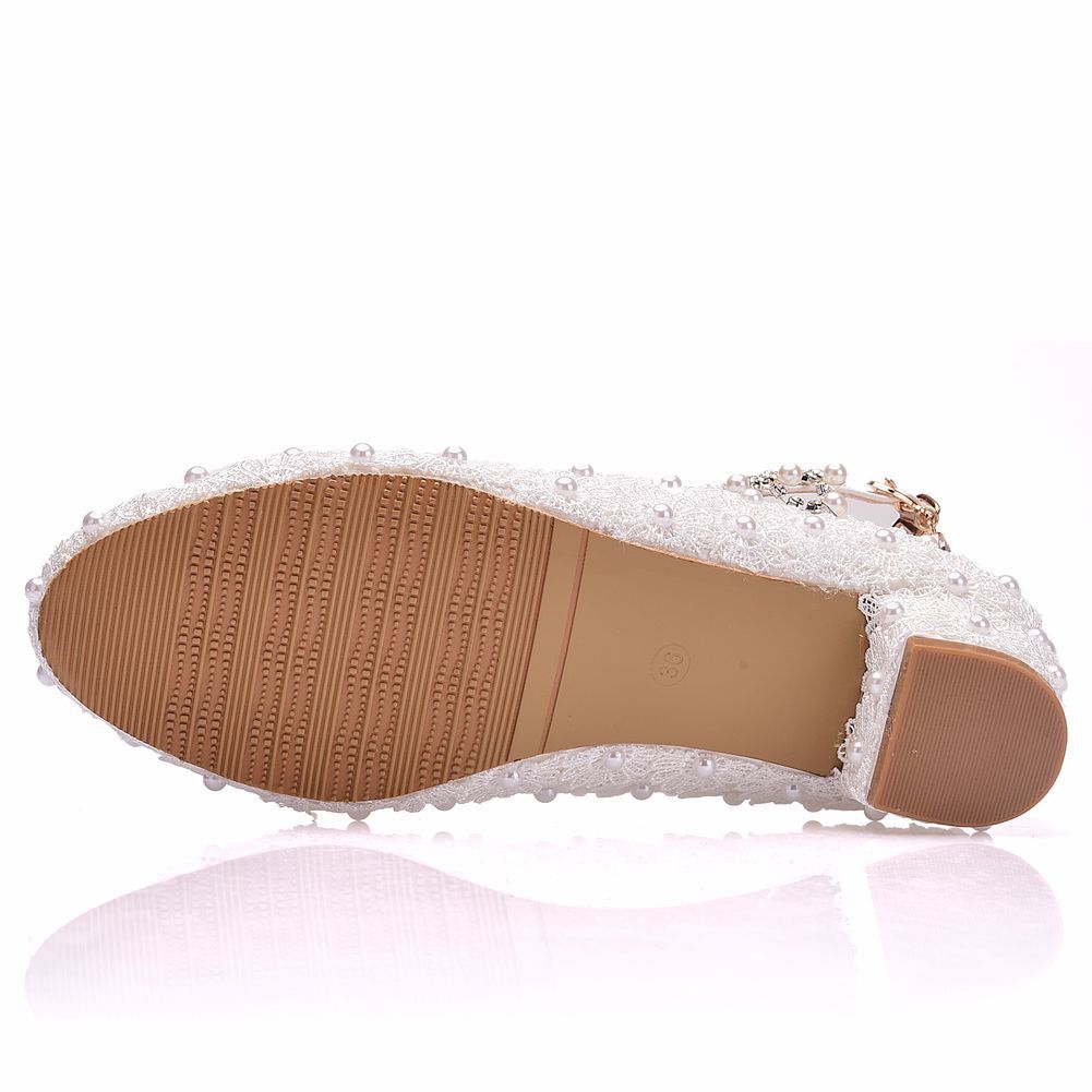 Popular elements: lace, beaded, flower, shallow mouth, Buckle, square heel