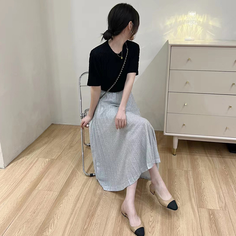 Skirt type: pleated skirtSkirt length: long skirtPopular elements: stitchingStyle: OL commuterPattern: plain