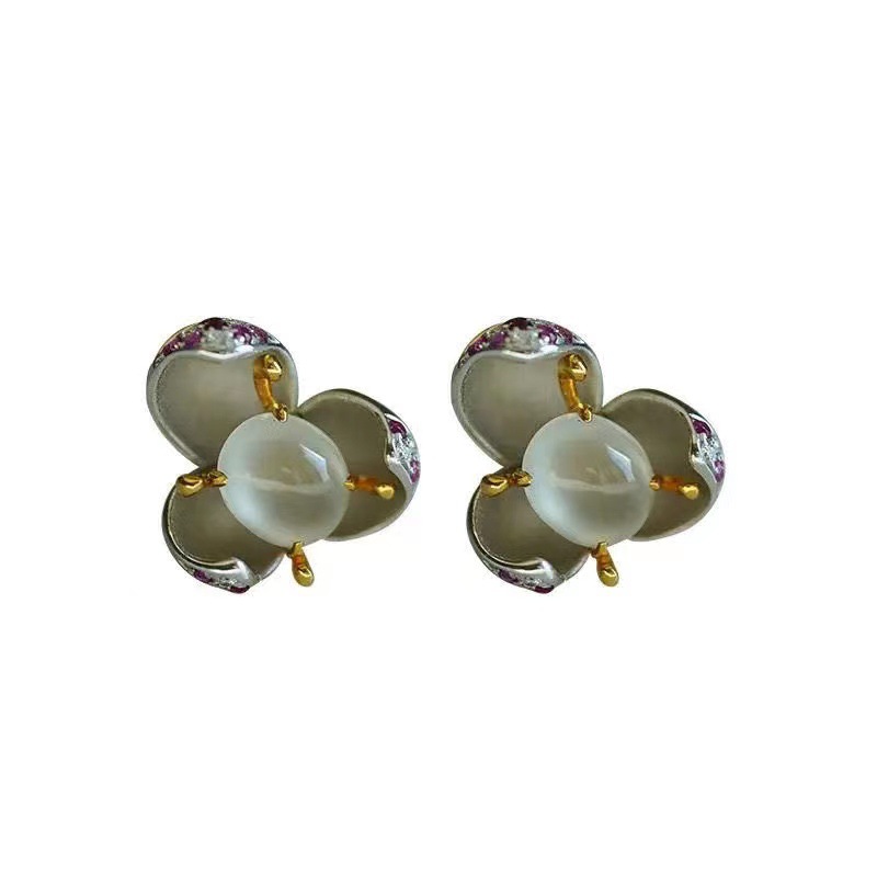 Inlaid Chalcedony High Ice-permeable Ear Studs