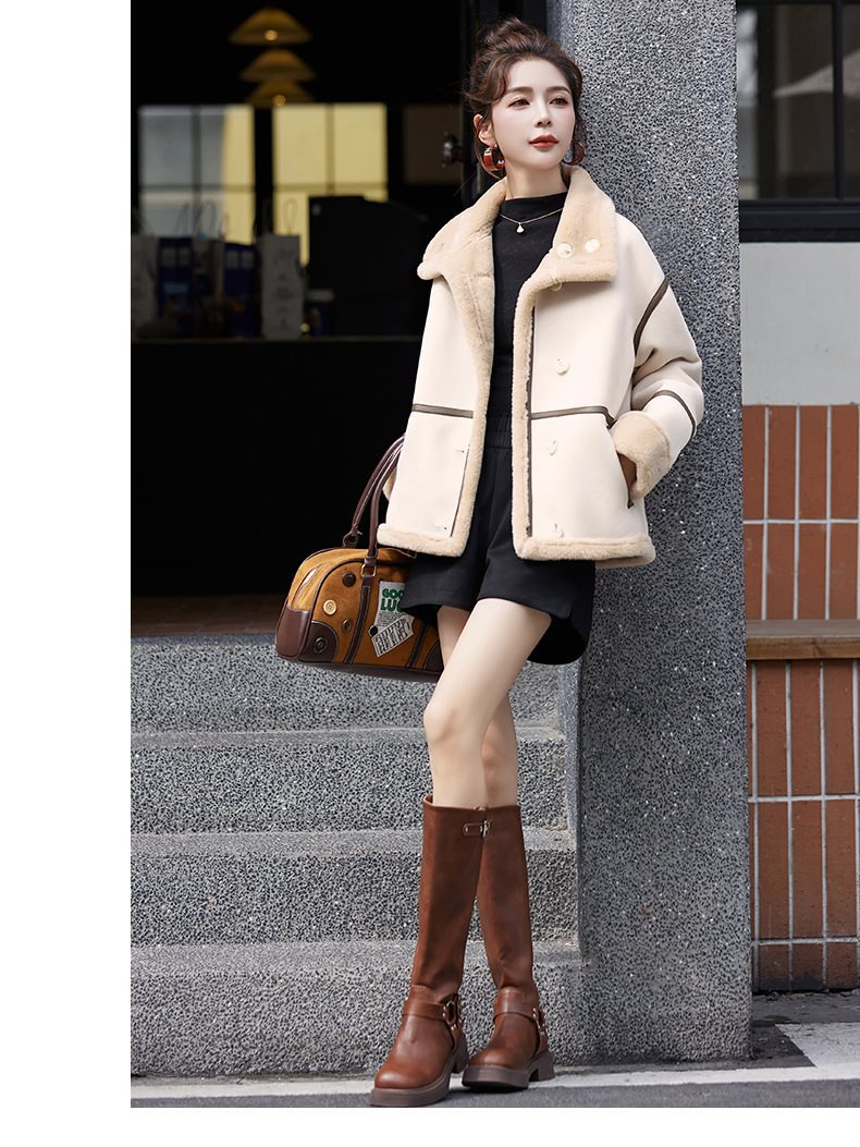 Lamb Wool Deerskin Velvet Beautiful Motorcycle Clothing Top