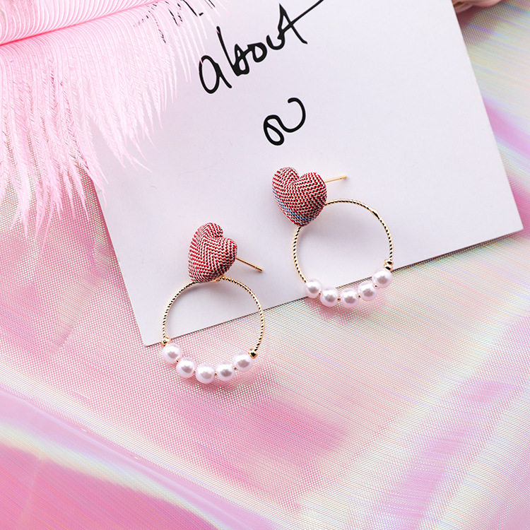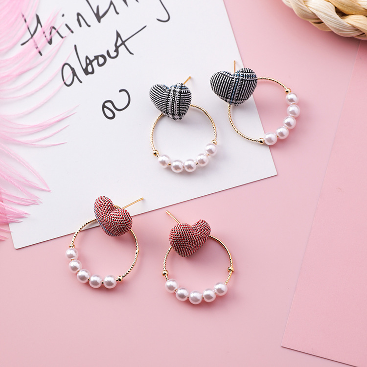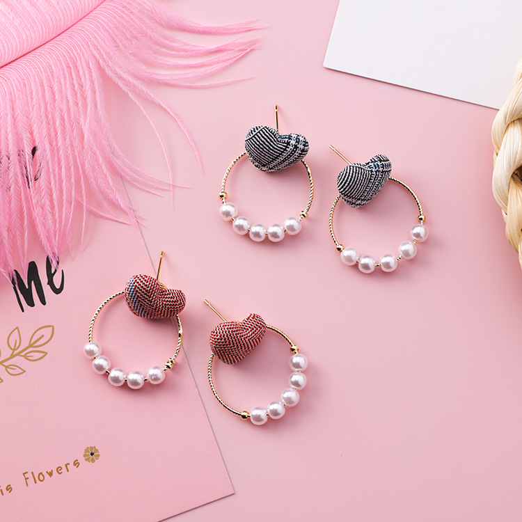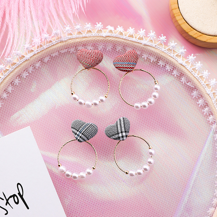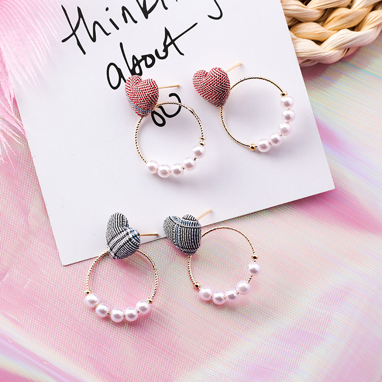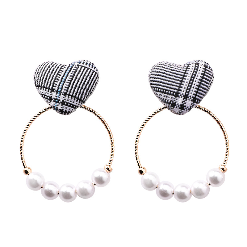 Wild Houndstooth Love Ear Studs Temperament Sweet Pearl Ring Geometric Earrings