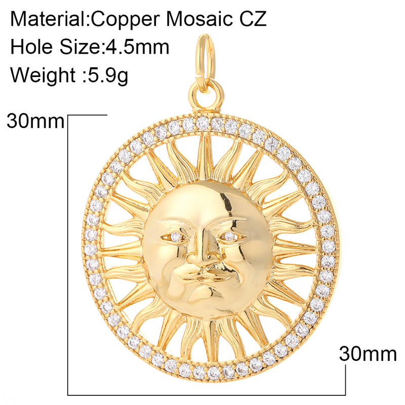 14K Color Preserving Gold Sun Face Head Pendant