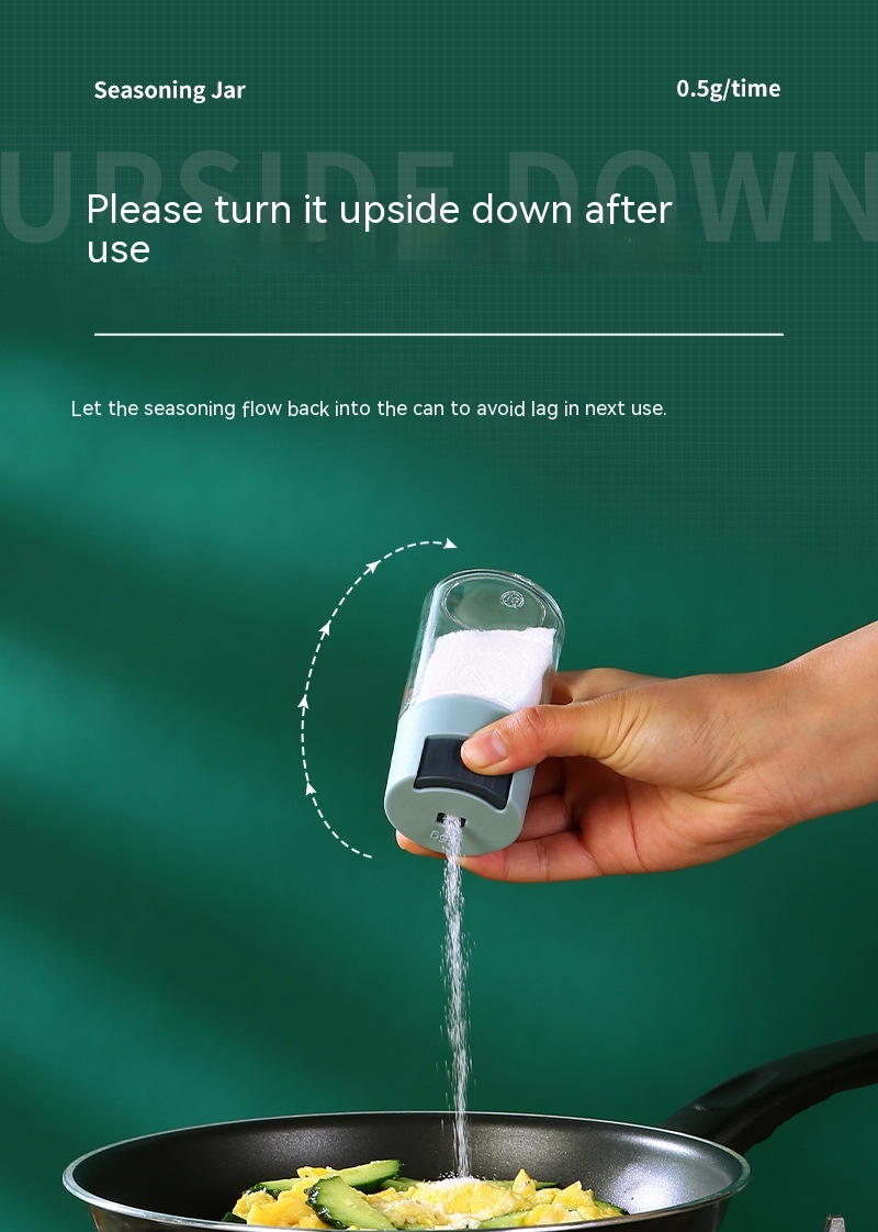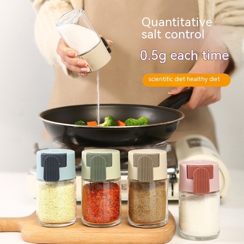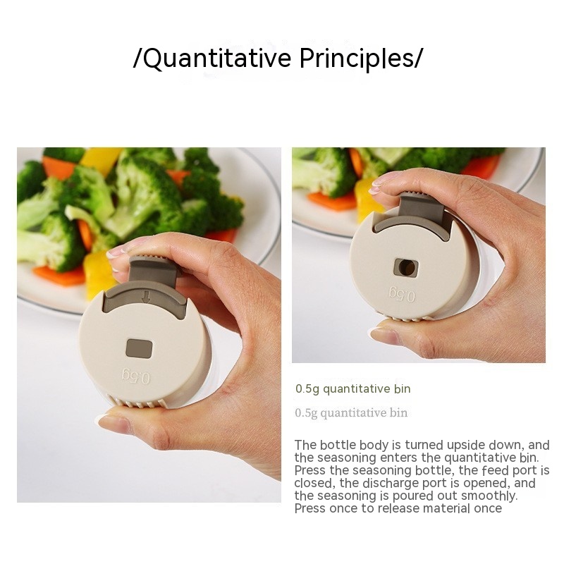 Product information:Name: quantitative spice jar Material: thick glass PP Color: beige, blue, pink, green Usage: packed with powder or small particle condiment, quantitative discharge 0.5g of material at a time