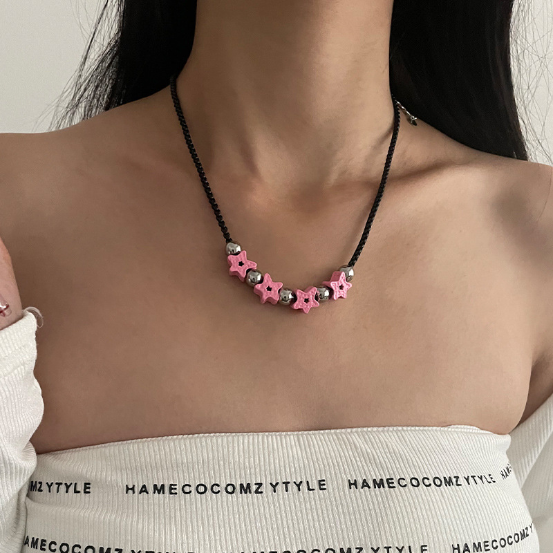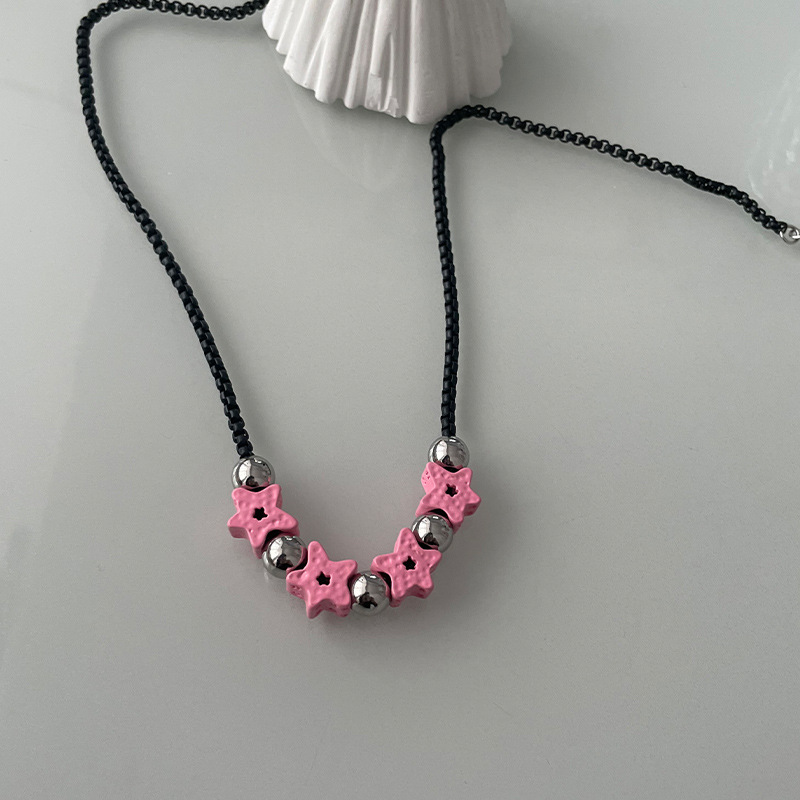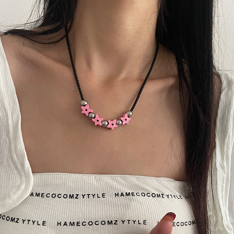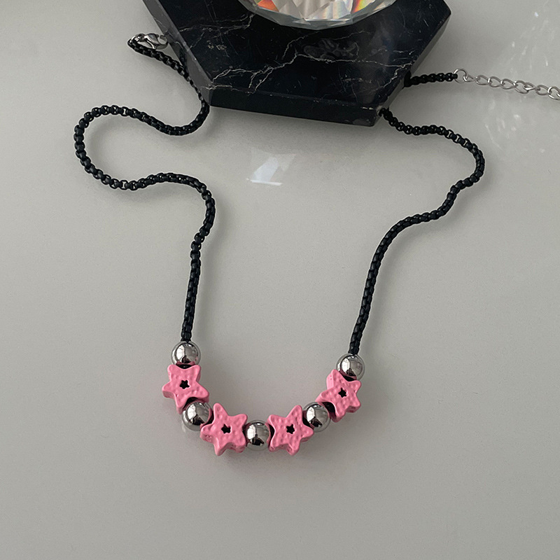 Product information:Color: Pink XINGX black chain necklaceApplicable people: womenPendant material: AlloyChain style: Curb ChainMaterial: AlloyShape: Star, geometricPopular elements: five-pointed star, SphereStyle: sweet and cool