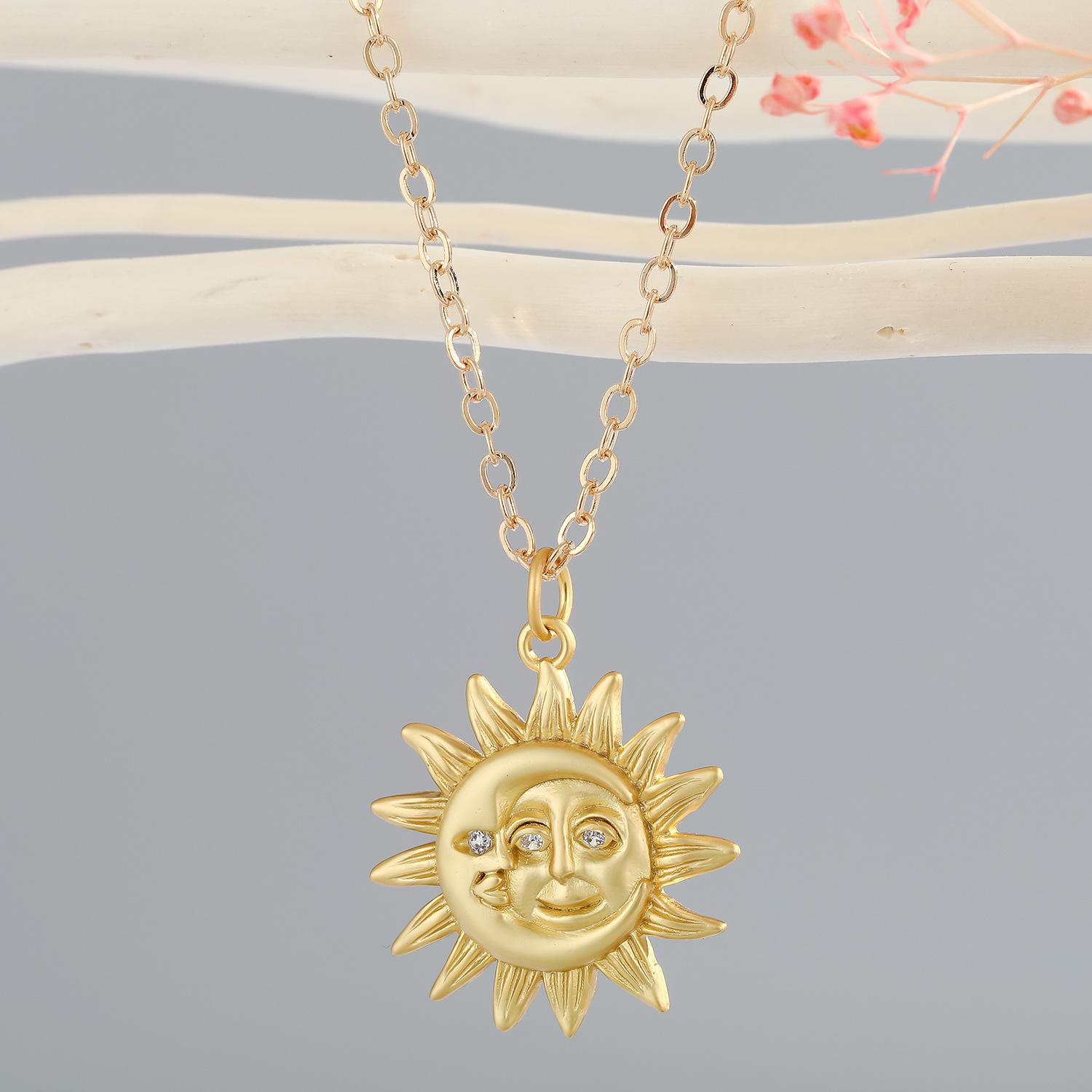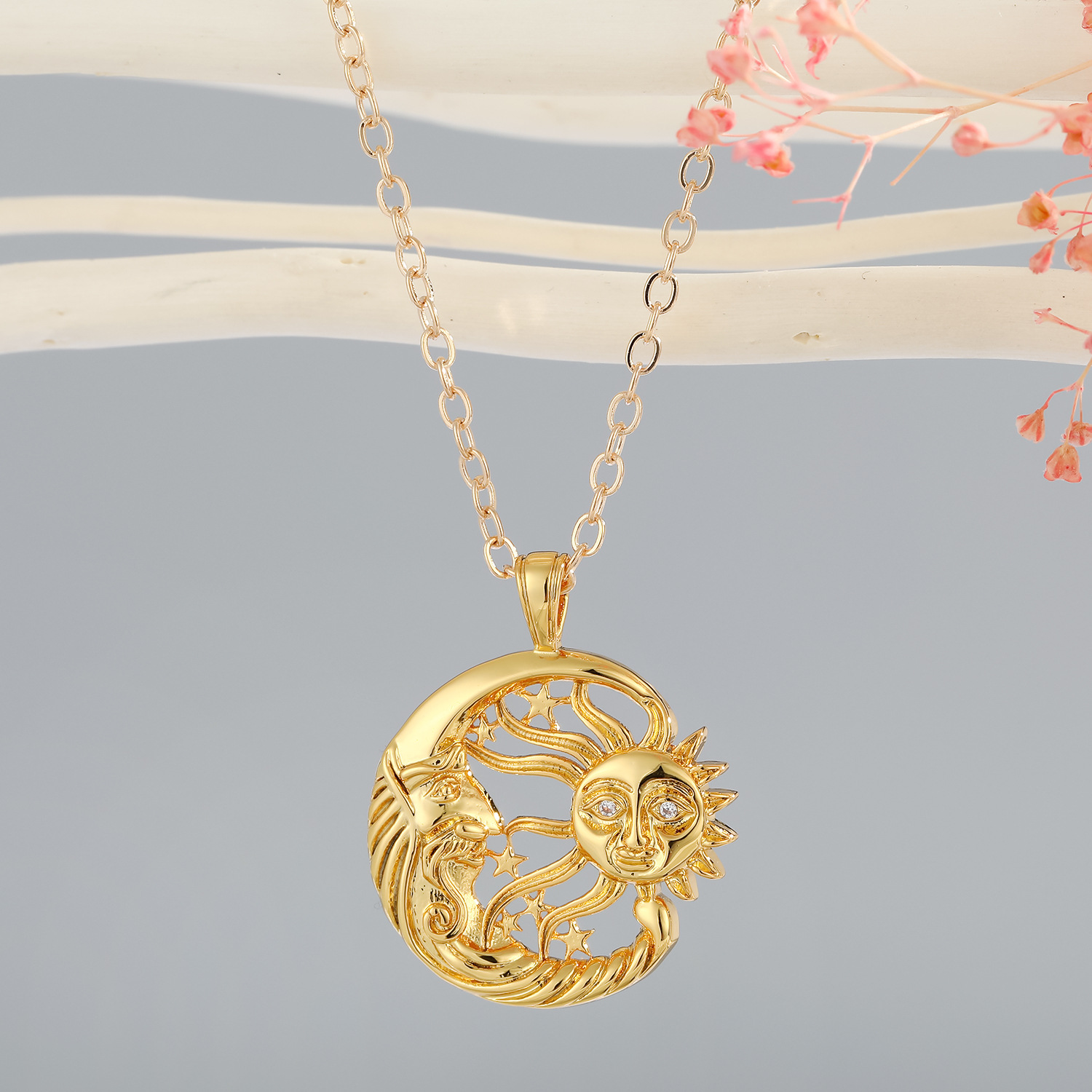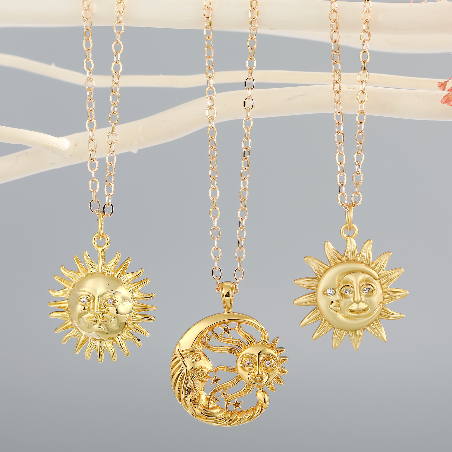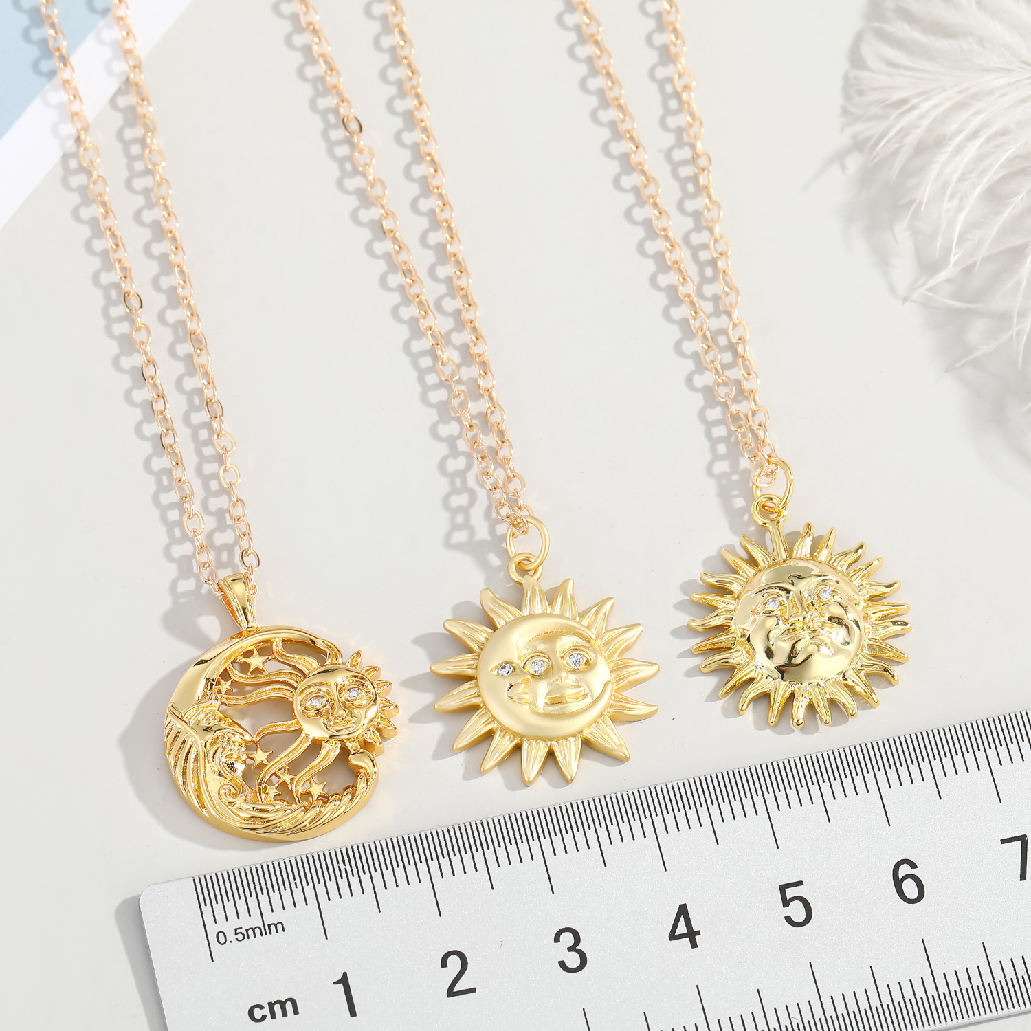 Product information:Material: AlloyStyle : Women'sShape: roundColor: hollow moon sun, moon sun face, sun facePacking list:Necklace*1