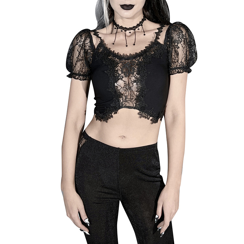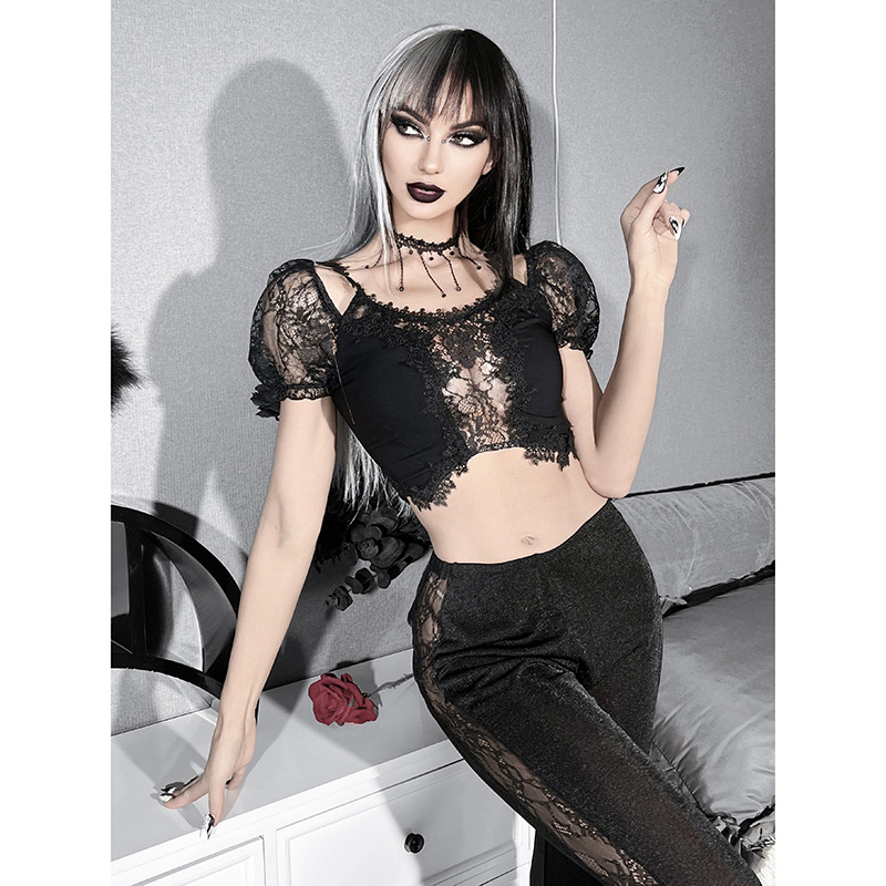 Women's Fashion Lace Pattern Body Short Sleeve Top