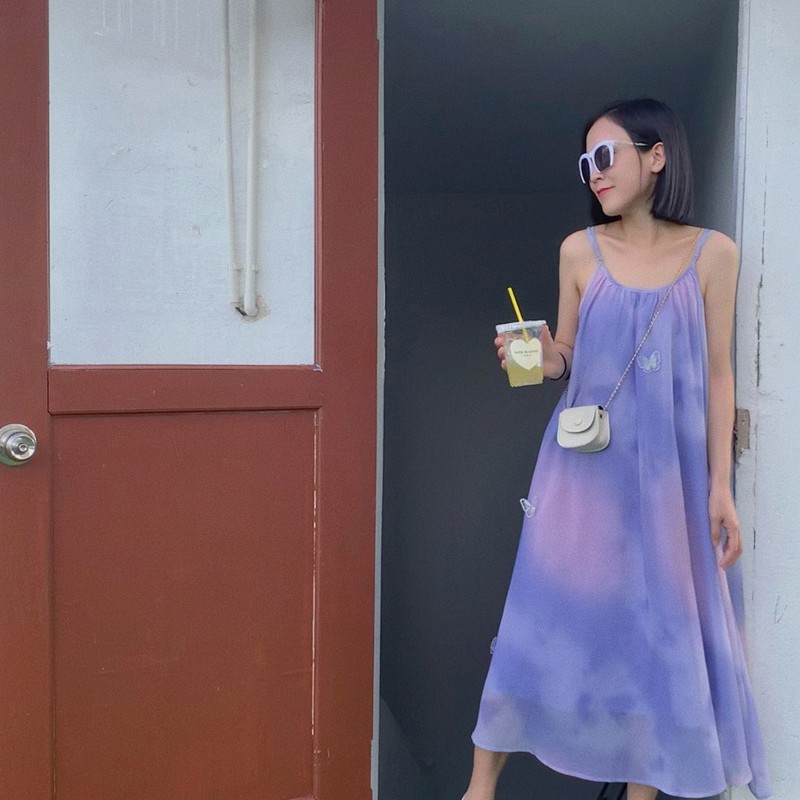 Color: purple and pink-dress with suspenders