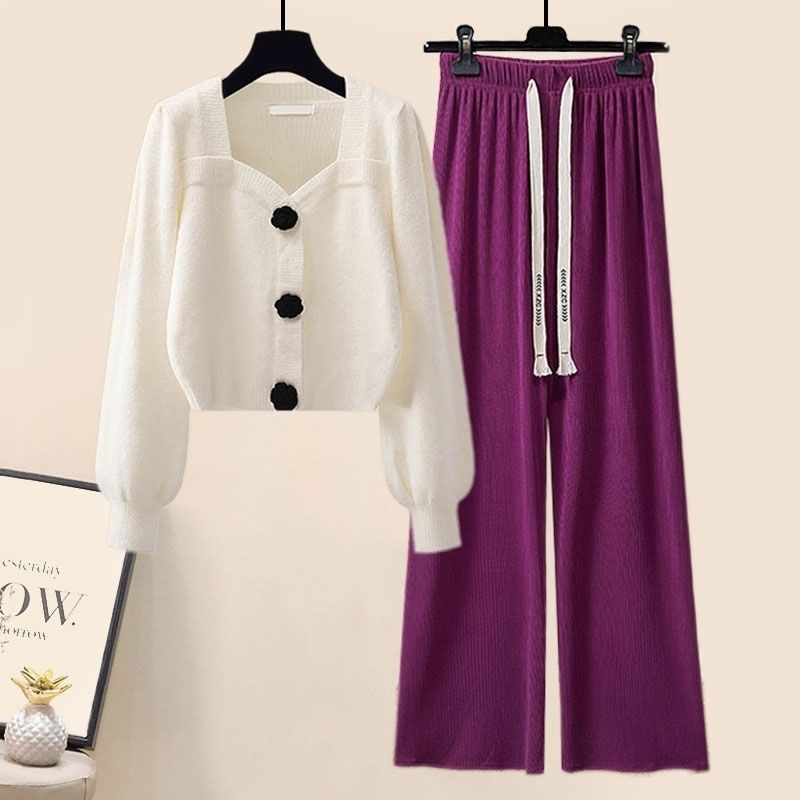 Color: blue top, apricot top, green top, apricot casual pants, purple casual pants, brown casual pants, black casual pants, apricot top with apricot casual pants, blue top with apricot casual pants, green top Matching apricot slacks, apricot jackets with black slacks, blue jackets with black slacks, green jackets with black slacks, apricot jackets with brown slacks, apricot jackets with purple slacks