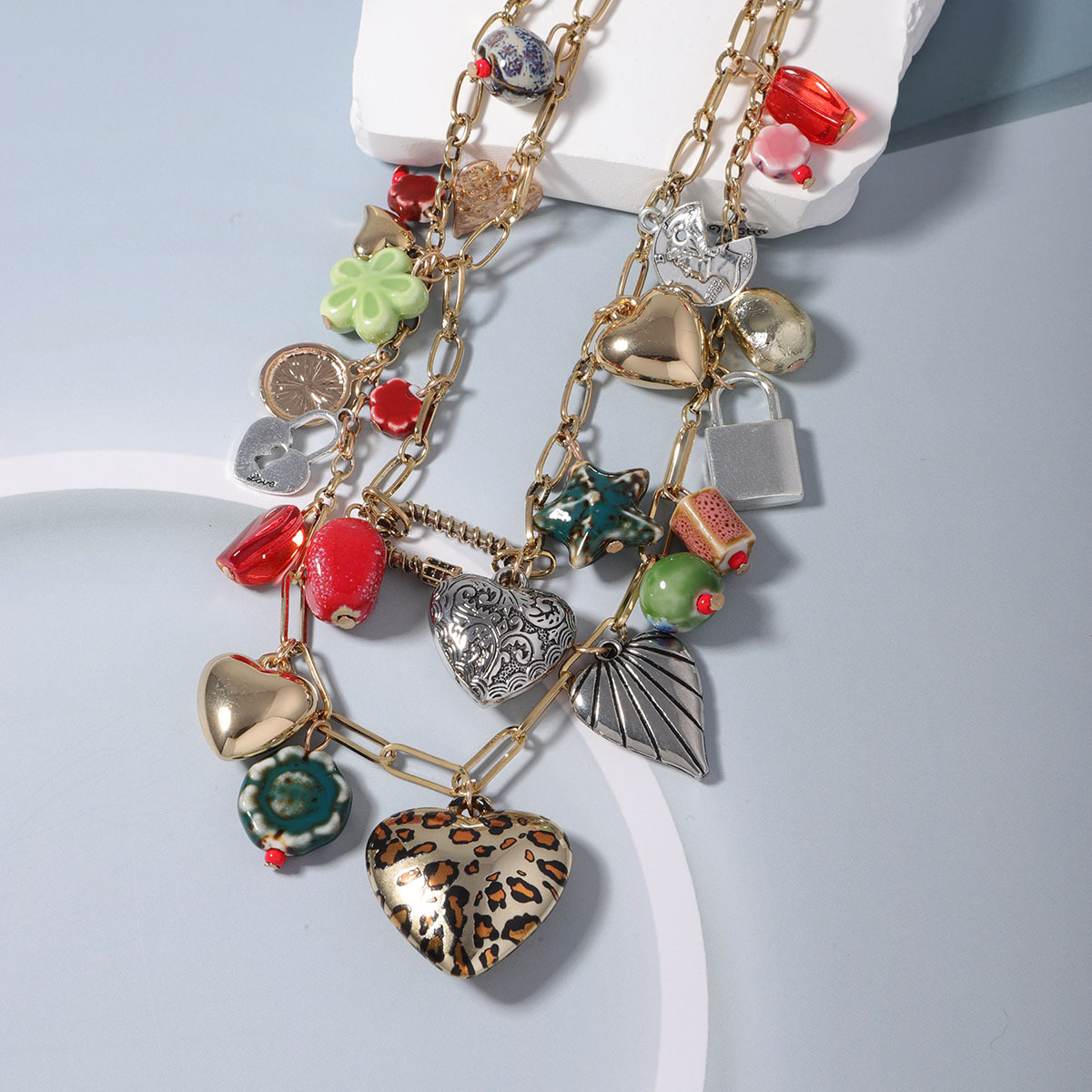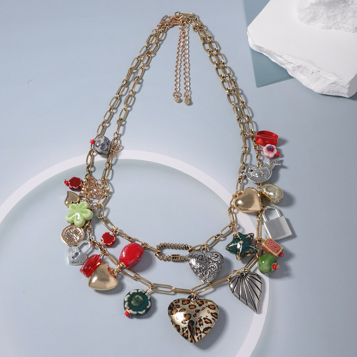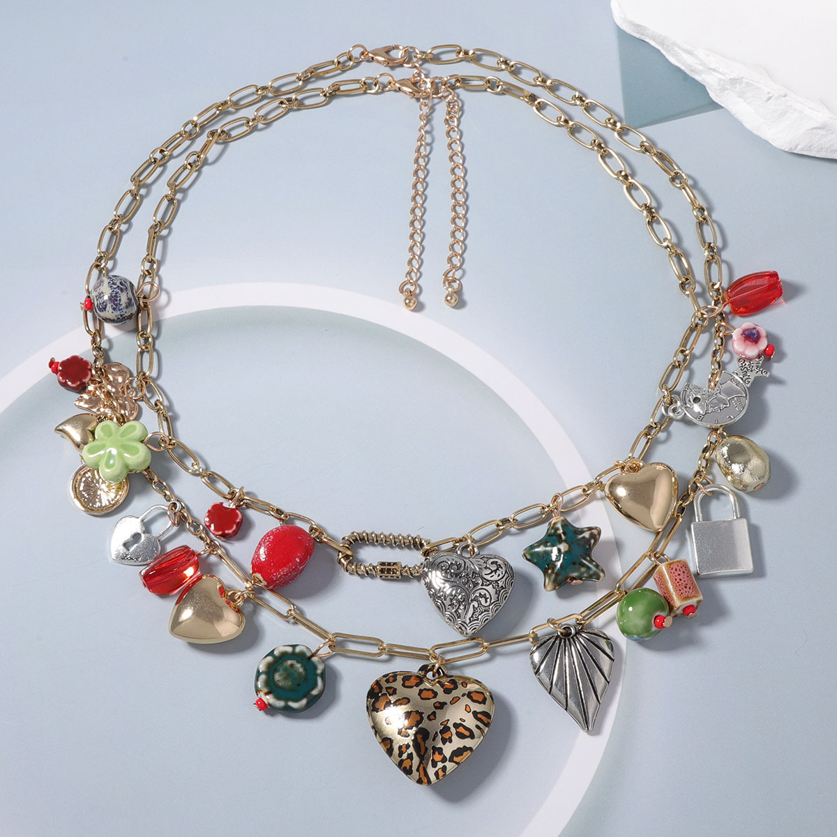 Trendy Retro Vacation Double Layer Twin Alloy Necklace