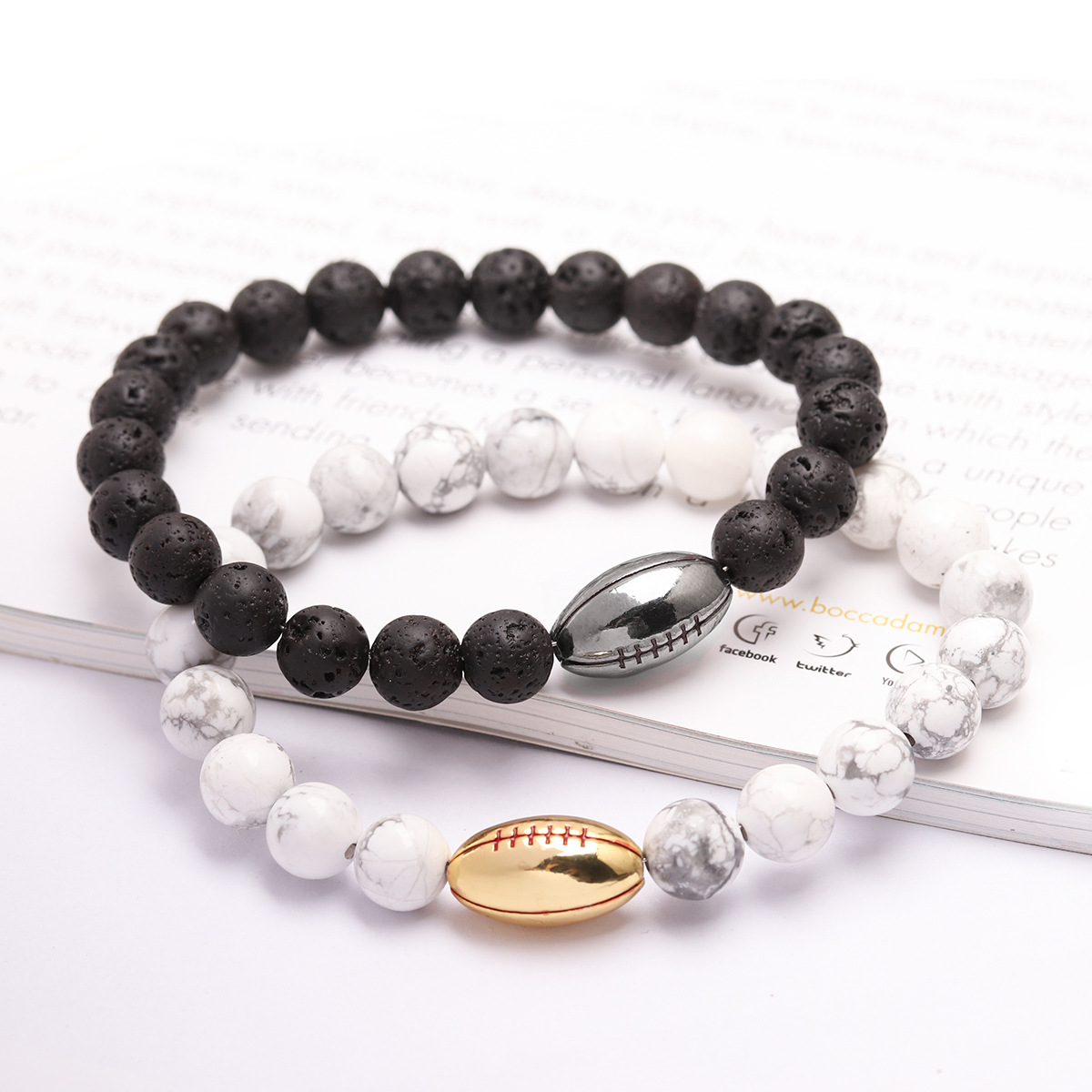 Material: stone + metalProduct use: Bracelet braceletSpecifications: Rugby 17*10mm, stone beads 8mm, total length 19cmColors: White, Black