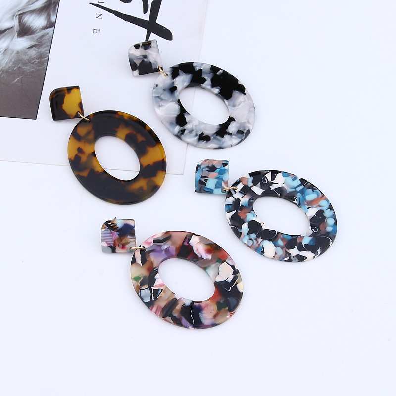 Fashion ZA Jewelry Acrylic Resin Oval Dangle Earrings For Women Geometry Big Circle Tortoiseshell Earrings Acetate Brincos