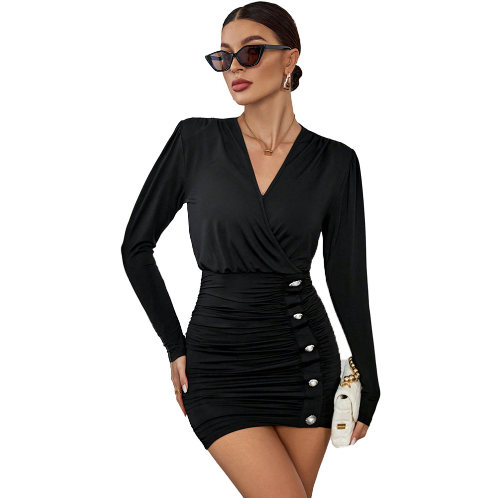 Product information: Pattern: solid color Skirt type: hip skirt Color: Black Waist type: high waist Size: S,M,L,XL Fabric name: viscose fiber Skirt Category: Dress
