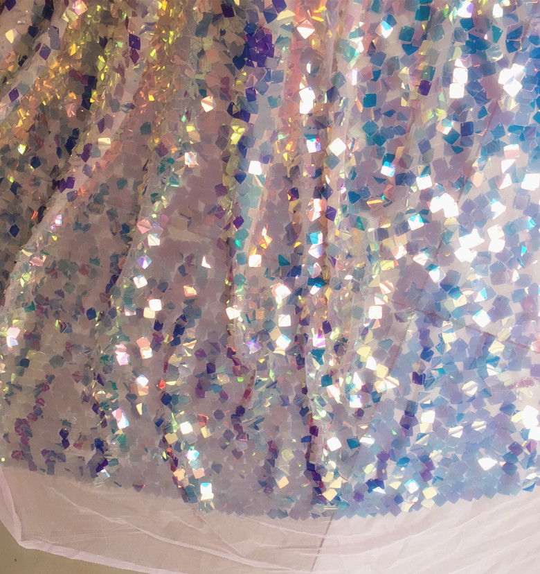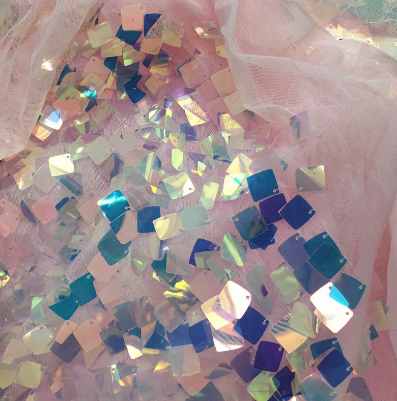 Composition and content: 100 polyesterYarn count: 30Density : 20Width: 125Color : Phantom pinkProduct name: 1.5CM square sequin fabricProduct width: 130CMProduct weight: 500 (g/㎡)