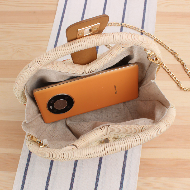 Product informationColor: color matchingMaterial: StrawBag shape: roundPattern: plainSize InformationSize: Bag width 22cm, bag height 20cm, bag thickness about 12cm, shoulder strap total length 115cmPacking listStraw bag*1