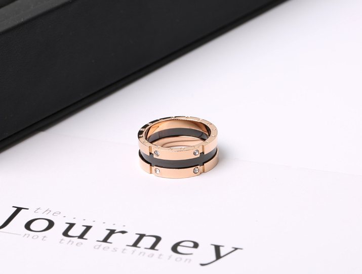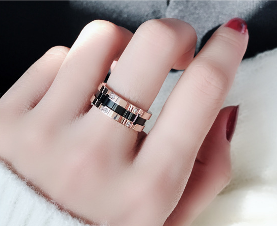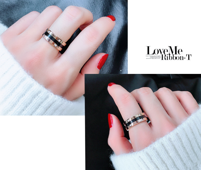 Black diamond-studded titanium steel ring