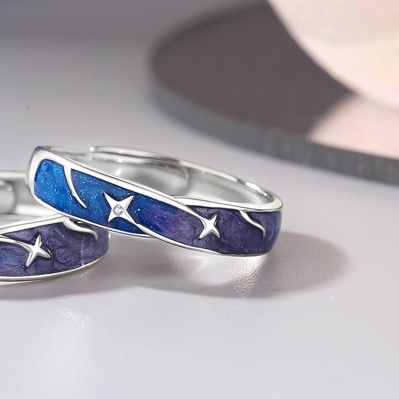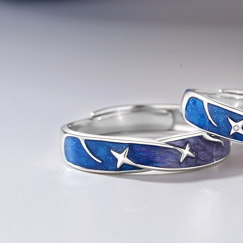 Product Details:Type: ringMaterial: silverShape: starTreatment process: electroplatingColor: meteor ring male, meteor ring femaleSize: Adjustable openingPackage Contents:Ring x1