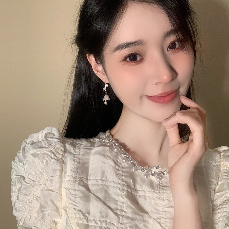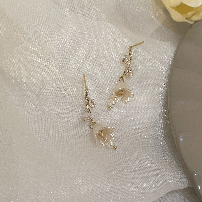Color classification: bell orchid flower shell bead earrings (silver needle)