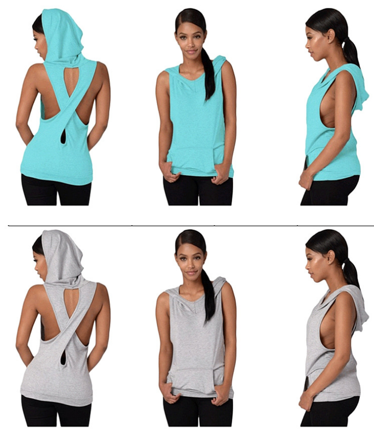 Fitness Backless Cross Sport T Shirt Women Breathable Sleeveless Yoga Shirt Gym Clothes Running Sportswear Hooded Yoga Tops