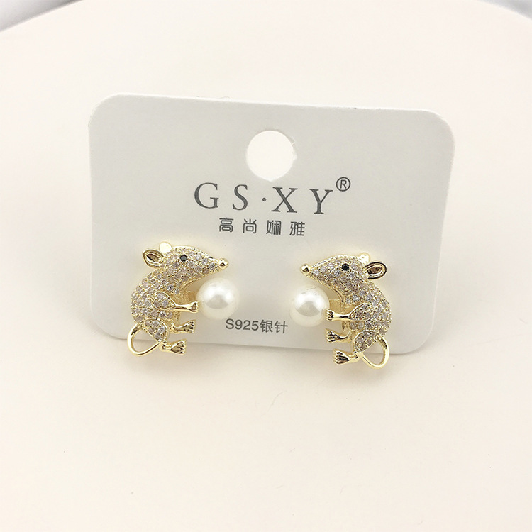 Style: European and AmericanMaterial: CopperType: EarringsStyle: Women'sModeling: Animal/ZodiacPackaging: Individually packedInlay material: gold-plated inlaid artificial gems/semi-precious stonesColor: real gold