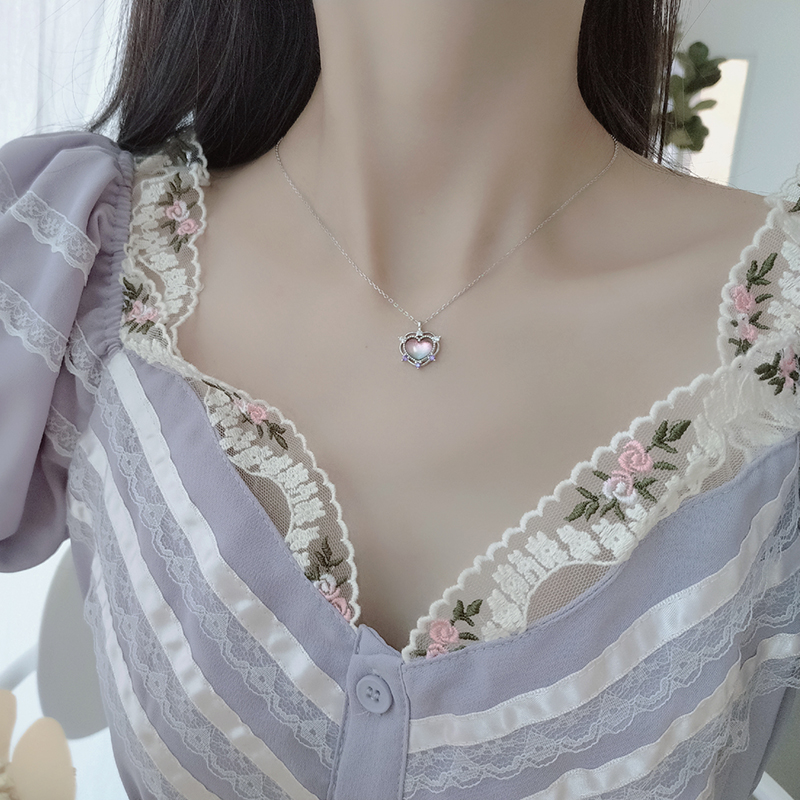 Product information :Color: white diamond sweet peach necklace orange pink sweet peach necklace purple sweet peach necklaceMaterial: silverPacking list:Necklace *1