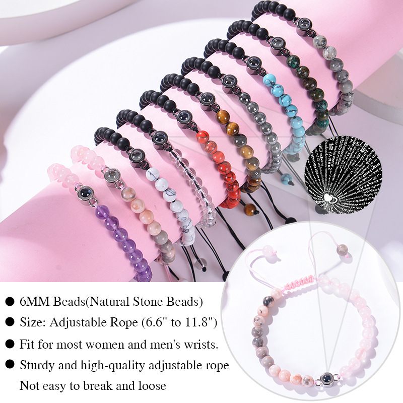 Color: pink crystal amethyst projection bracelet, pink crystal pink zebra stone projection bracelet, black magnetic stone grinding sand stone projection bracelet, map stone grinding sand stone projection bracelet, turquoise frosted stone projection bracelet, Tigereye frosted stone projection bracelet, white turquoise frosted stone projection bracelet, white crystal frosted stone projection bracelet, African pine frosted stone projection bracelet, red pine stone grinding sand projection bracelet