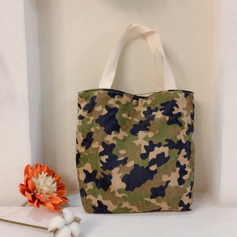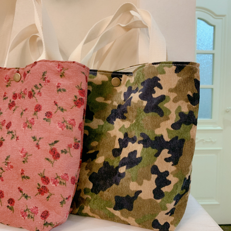 Exterior: corduroyLined, cotton and linen linedDimensions: width 30cm, height 23cm, bottom 8cm
