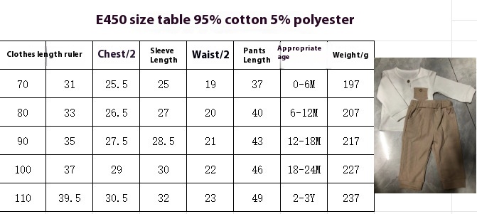 Product information: Color: white, apricot Applicable height: 70cm,80cm,90cm,100cm,110cm Suit type: shirt and pants Fabric name: knitted Main fabric composition: Cotton Applicable Gender: Male Style: Casual