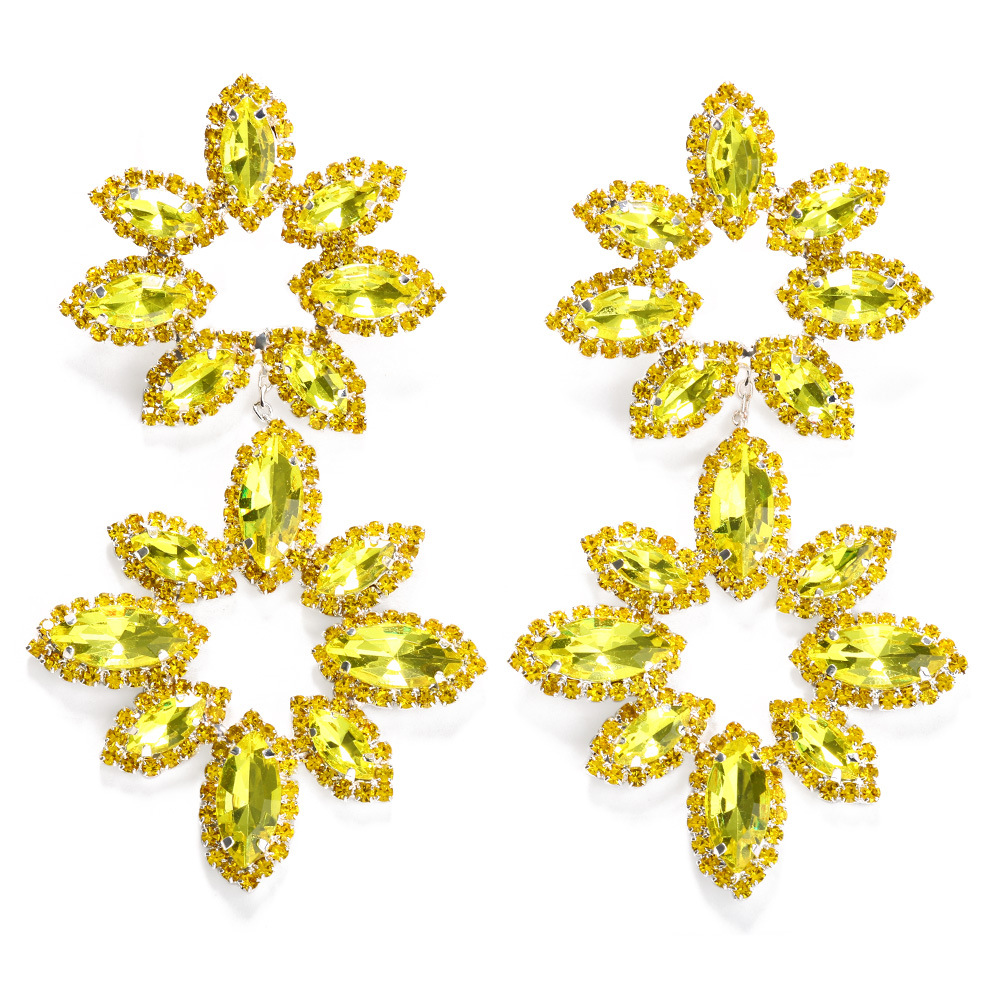 Product Information:Material: rhinestoneStyle: FemaleStyling: FloralColor :AB Color, white, yellow, green, blue, redStyle: gold plated, silver platedSize: 5cm wide, 7cm widePacking list:Earrings X1Pair