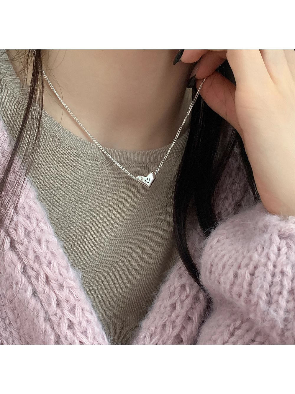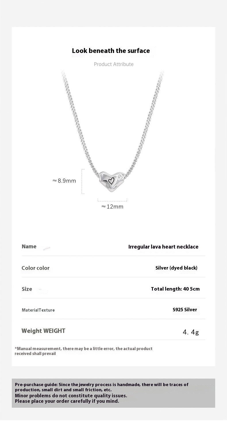 Product information:Treatment Process: Black dyeing processPendant material: 925 silverPurity: 925 silverShape: heart shapePopular elements: Love/heart Style: sweet and coolPerimeter: 41cm (inclusive)-50cm (inclusive)
