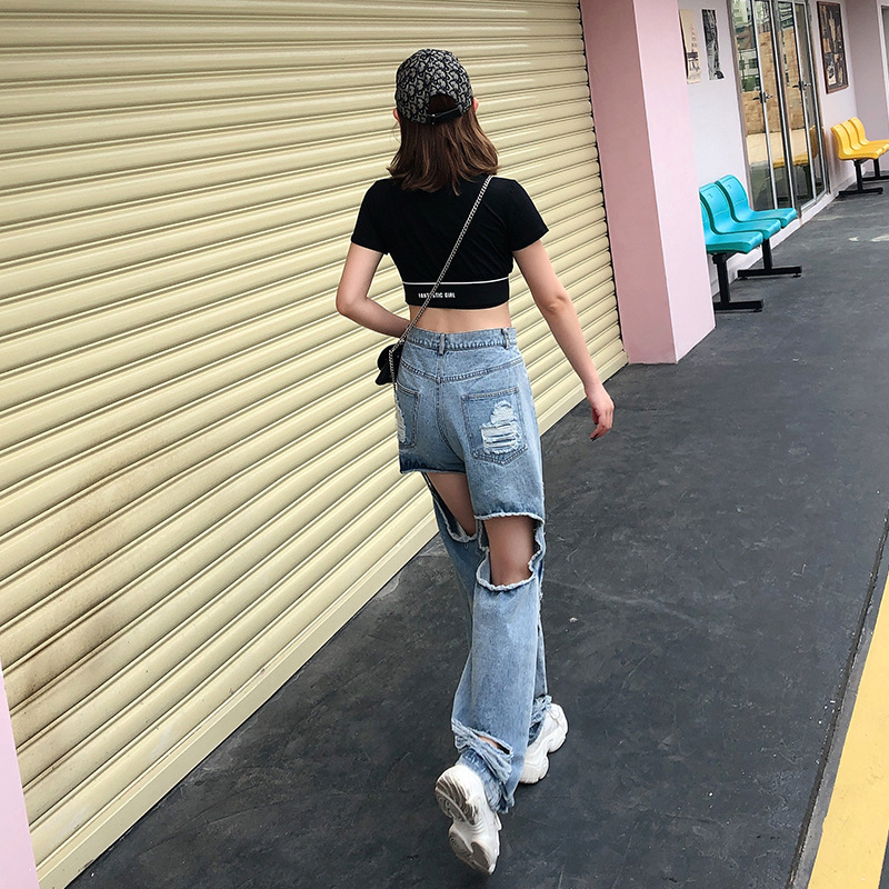 Fabric name: CottonMain fabric composition: cottonThe content of main fabric ingredients: 10%-29%Style: straight leg pantsLength: trousersWaist type: double trouser waistCowboy color: blueThickness: fleecePopular element: distressed