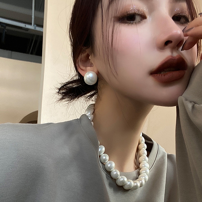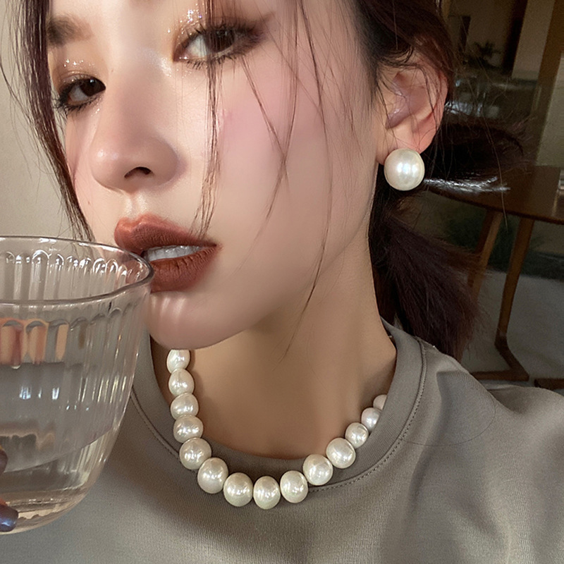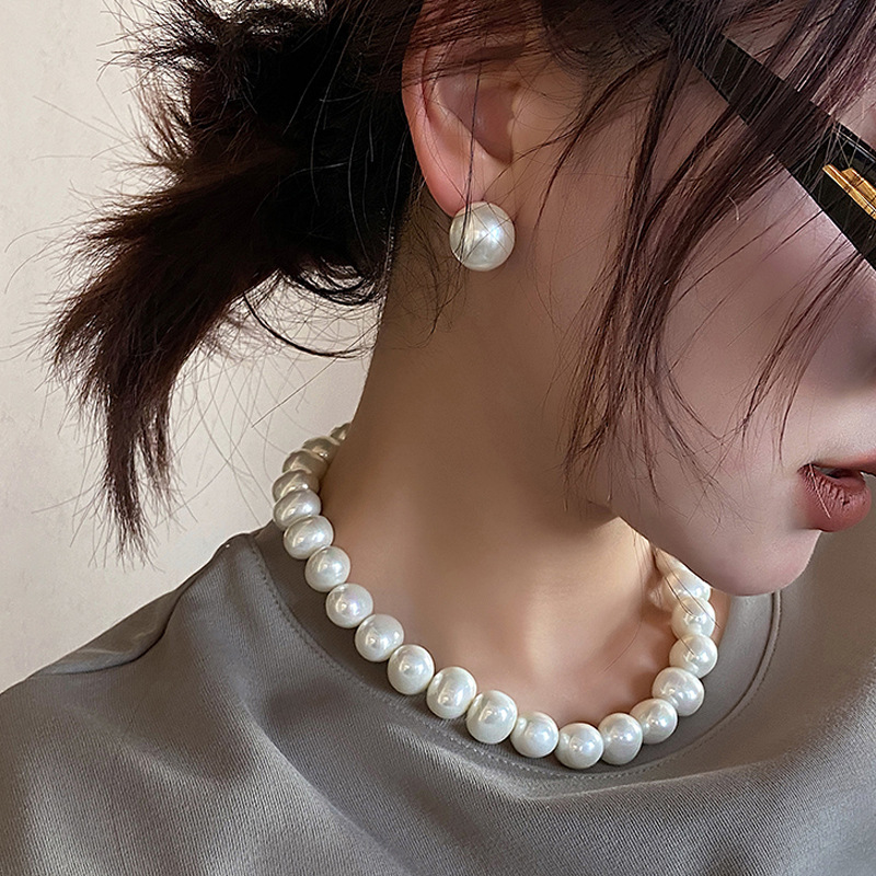 Product information: Color: A pearl necklace, a pair of pearl earrings Style: Women's Chain style: ball bead chain Material: Alloy Shape: Geometric Popular elements: Ellipse Style: French retro Circumference: 21cm (inclusive)-50cm (inclusive)