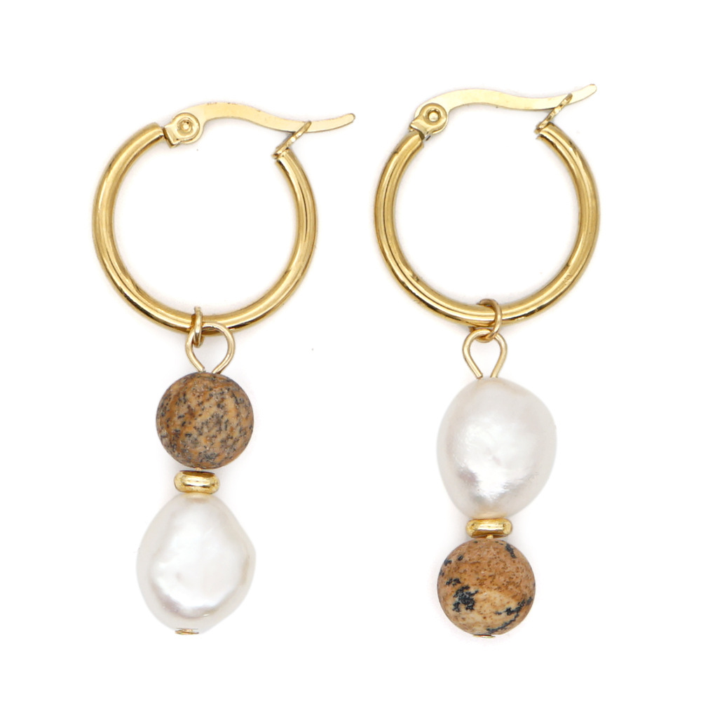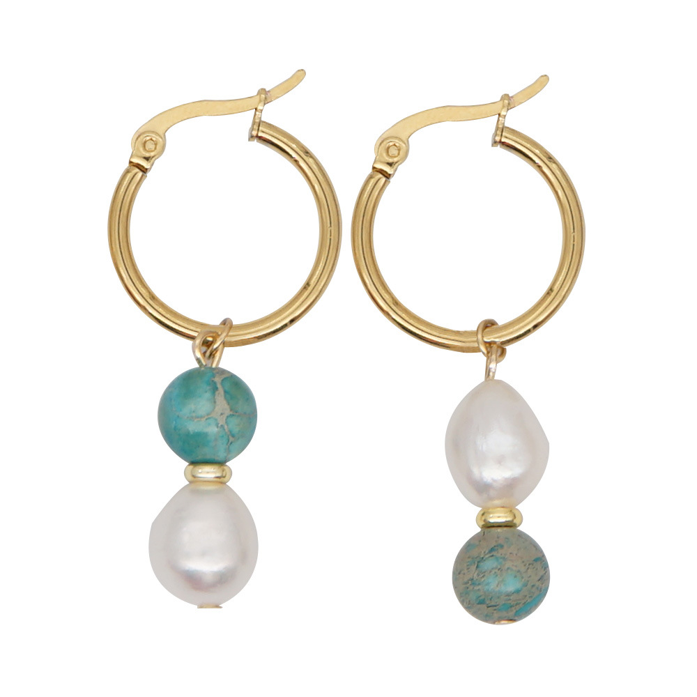 Sime Style Natural Pearl And Colored Gemstone Earrings